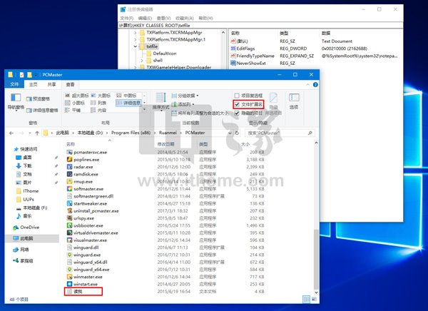 在Windows文件资源管理器中,文件扩展名默认不显示,但类似于DLL这种却始终显示;如果你想查看扩展名,可以在文件夹选项中打开显示选项,Win10用户也可以在Ribbon标签页中直接打开扩展名显示项。