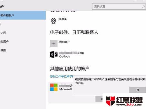 下拉滚动条,在“其它应用使用的账户”一栏里面,选中需要删除的microsoft账户,点击删除-是。