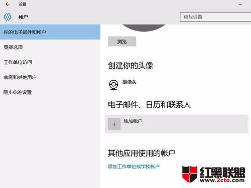 点击开始菜单,打开设置-账户-你的电子邮件和账户。