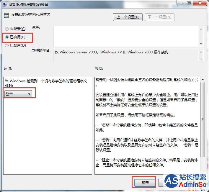 3、在设置界面勾选“已启用”,然后点击确定。