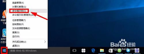 【方法二】在Windows10的开始菜单上点击右键,选择命令提示符打开。