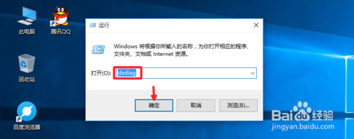 【方法三】按下键盘WIN+R打开运行,然后输入dxdiag命令确定。
