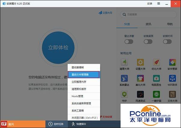 4、重启 文件资源管理器 Explorer.exe,可在软媒魔方(点击下载)首页的快捷指令中轻松实现,上述修改即可生效。
