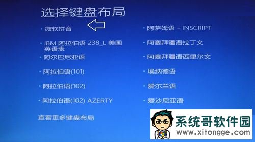可能要重启三次失败之后,才可能会弹出Windows10的修复菜单,首先是选择键盘布局→微软拼音。