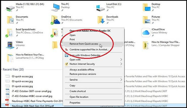 你最喜欢的文件怎么样? 虽然可以将文件夹添加到快速访问,但无法手动添加文件,因为文件在列表中的存在会自动基于您使用它的频率。 但是你可以把kibosh放在你不想在列表中看到的文件上。 右键单击该文件,然后从弹出菜单中单击“从快速访问中移除”命令。 文件从列表中消失。