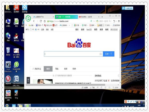 进入win10桌面,打开一个窗口,如“浏览器”。