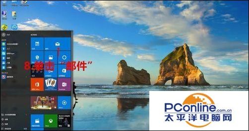 7、打开win10的开始菜单,单机“ 邮件 ”。(如果菜单的“任务栏”没有“邮件”。你也可以到“所有应用中”或是“搜索框”中搜一下)