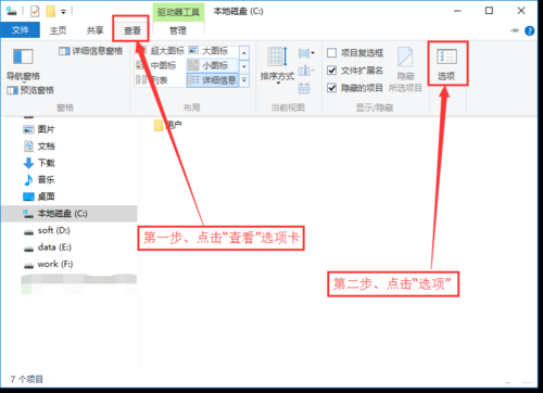 2、单击窗口菜单栏上的查看,在工具栏中勾隐藏选项