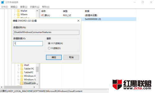 双击DisableWindowsConsumerFeatures,将其值设置为1,然后保存。