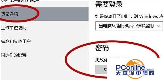 2、在左侧点击【登录选项】,在右侧密码下方点击【更改】;