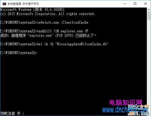 4、输入指令del /A /Q “%localappdata%\IconCache.db”回车,如图所示,注意引号用英文输入法输入。