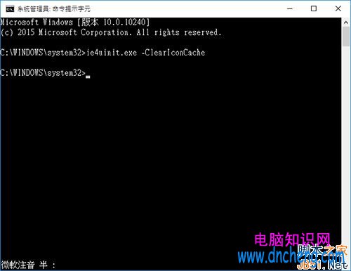 2、在命令提示符中输入指令ie4uinit.exe -ClearIconCache回车,如图所示。