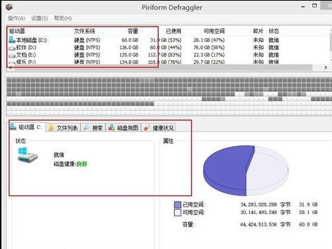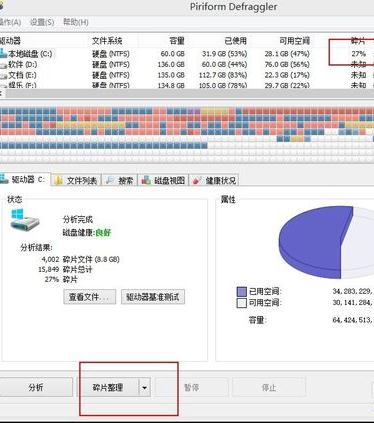 1下载并解压、双击Defraggler、选择需要清理的磁盘、单击分析