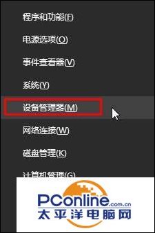 1、进入到安全模式,如果没有出现蓝屏或黑屏就说明是第三方软件不兼容或者驱动的影响,我们可以在开始菜单上单击鼠标右键,选择“设备管理器”;(win10进入安全模式的方法)