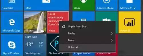 注意:有一些瓷砖只是广告(而非应用程序),所以应选择“从开始中解除掉”来删除它们。