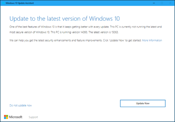 只要下载Microsoft推出的「Update Assistant」Windows 10更新助手,程序内就会通知你,你的Windows 10系统并不是最新版本,并告知你的电脑系统版本是哪一个,而最新的版本是15063。