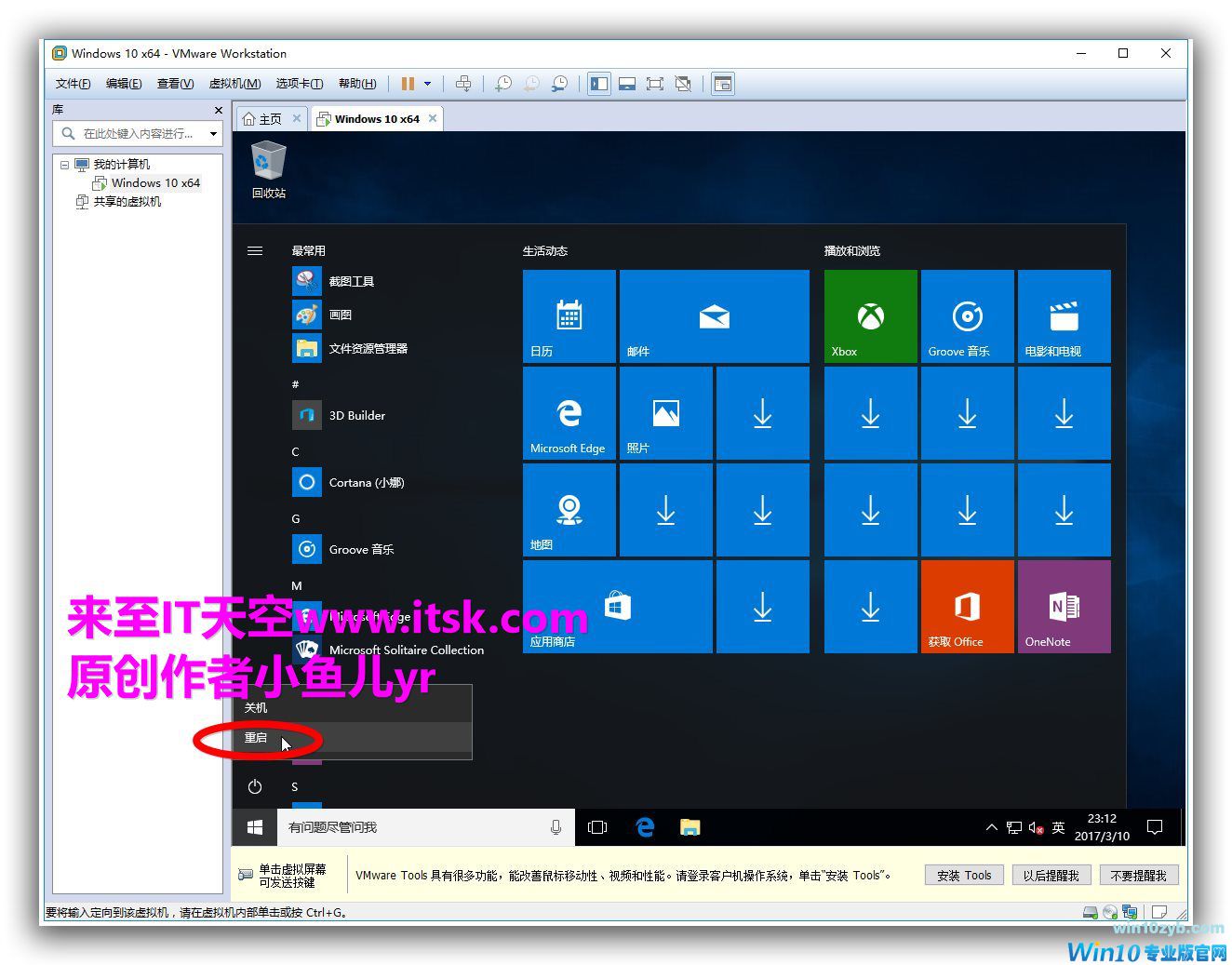 然后重启WIN10虚拟机,这次重启后就会以Adminstrator内置管理员的权限登录了。