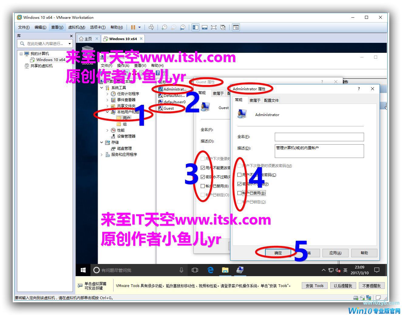 然后按下图步骤操作,开启Adminstrator和Guest账户。