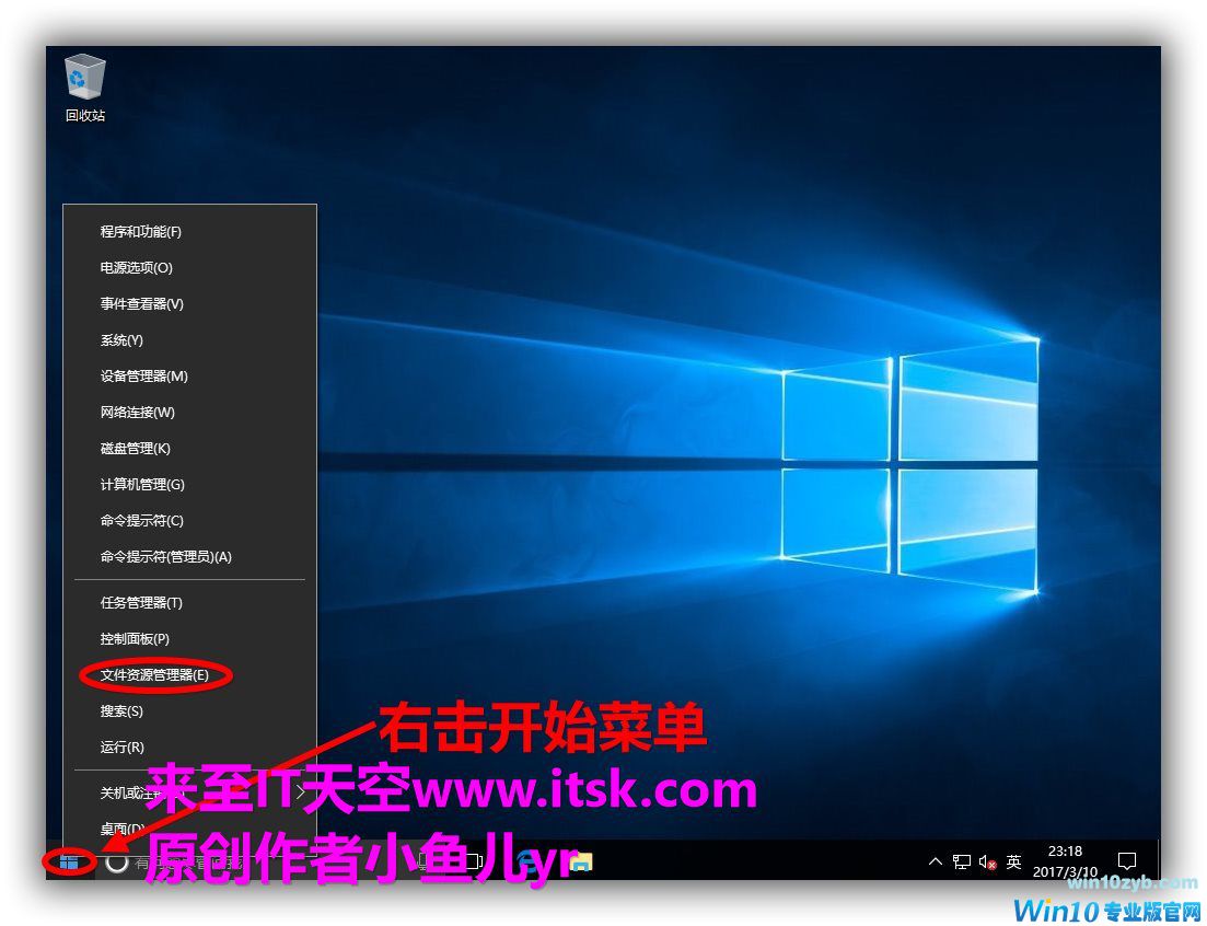 右键单击开始菜单,选文件资源管理器。