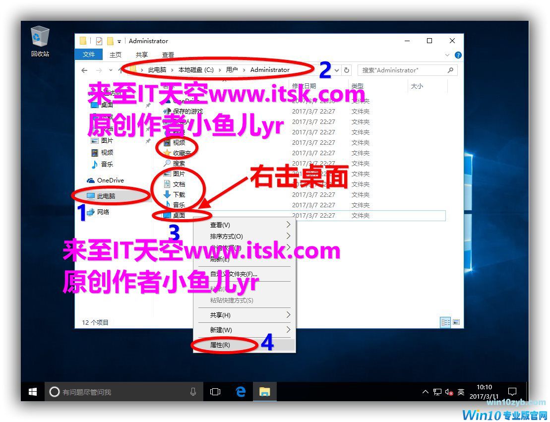 按下面步骤操作找到用户资料存放路径,这里只演示桌面的转移的过程,其他音乐,图片,视频等都是一样的方法。