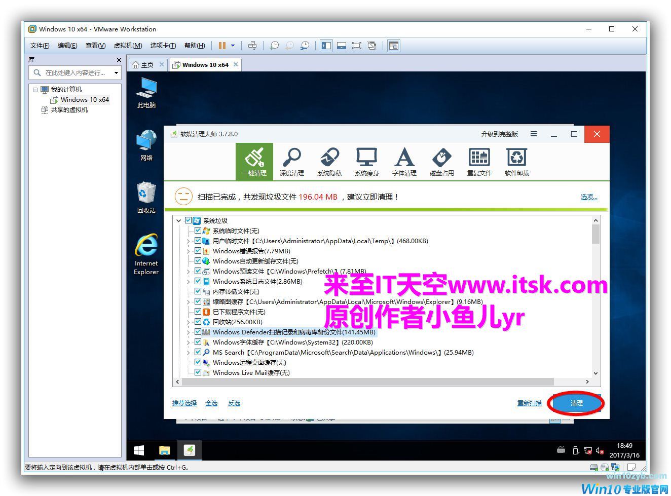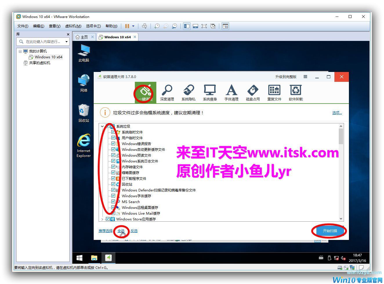 5.软媒清理大师清理 一键清理如下图,全选,扫描