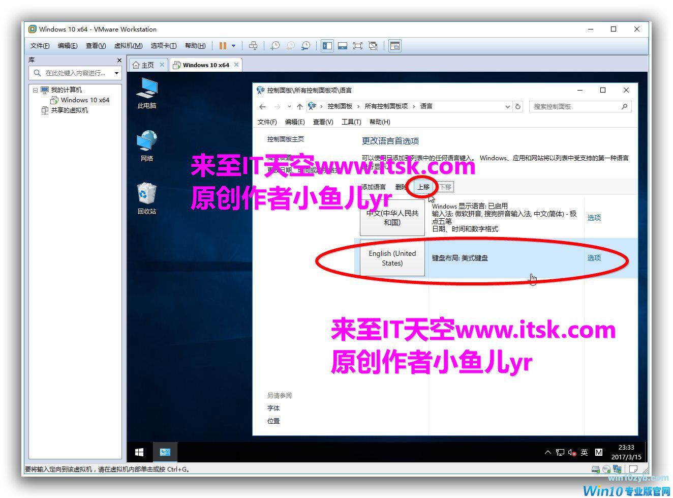 然后将刚才添加的美国英语移到最上面 然后删除下面的中文(微软拼音)