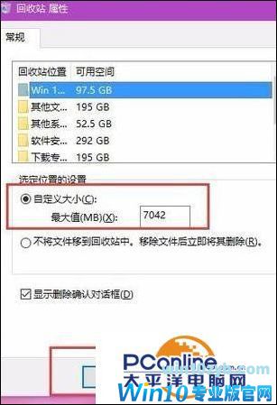 打开回收站属性设置页面之后,请确保没有关闭回收站功能,即选择文件删除操作之后是将文件放入回收站而非直接删除,如果开启直接删除文件功能的话,Win10系统中的磁盘清理功能将默认处于关闭状态。