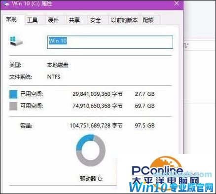打开Win10系统磁盘属性页面之后,在磁盘属性页面中点击选择“磁盘清理”选项,打开Win10系统磁盘清理向导页面。