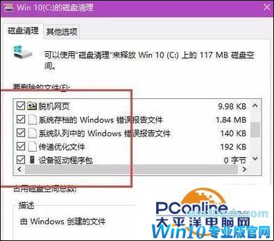 这里,推荐大家将全部的可删除文件全部勾选,大家是可以放心的删除这些文件的。毕竟使用系统自带的文件清理工具还是值得信任的,特别如果是由其他操作系统升级至Win10系统之后,残留的文件是很多的,严重影响了系统的运行速度。