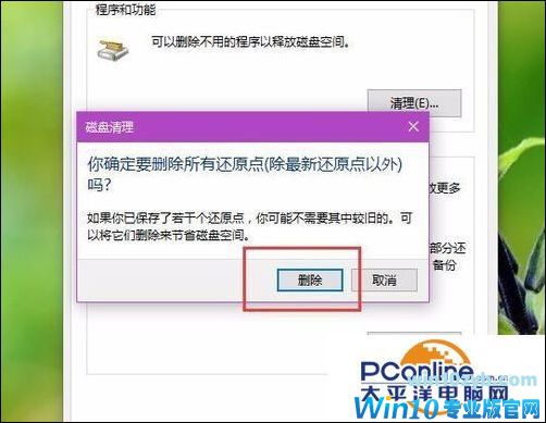 在第二个删除选项中,点击清理按钮之后将会删除系统中自动创建的还原点文件,由于还原点文件的建立,还原点过多时是需要删除部分还原点来释放系统空间的,小伙伴们赶快试试吧。
