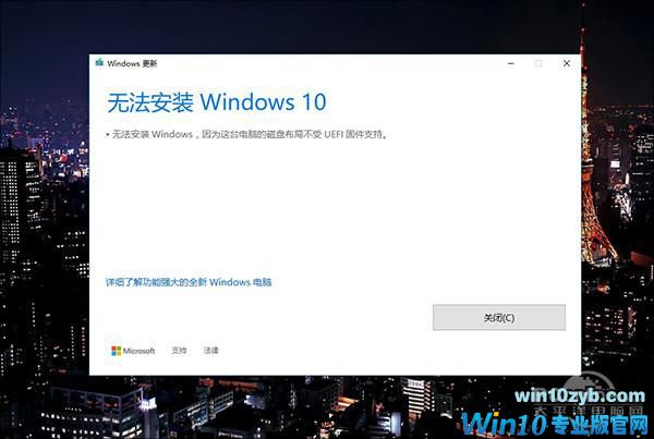 微软的语言表达能力一向欠佳,这句话用大白话翻译一下,大体意思就是“这台电脑没有使用UEFI格式固件,So……Win10也就没法安装了。”言外之意就是,如果使用了UEFI模式,无论升级还是安装,所有问题就都迎刃而解了。