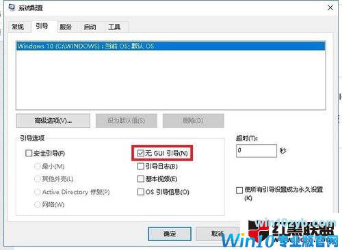 win10开机加速设置: Win+ R – 输入 msconfig – 引导 – 勾上 无GUI引导,确定(启动界面转圈圈会消失)