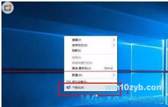 1、在桌面单击鼠标“右键”,弹出菜单,选择“个性化”;