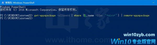 get-appxpackage -allusers | where {$_.name -like“*mira*”} | remove-appxpackage