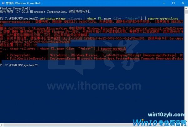 问题来了,这个应用在Powershell里用命令无法直接卸载,错误代码为0x80070032。