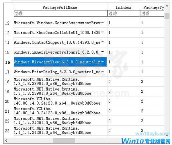 你将看到一个长长的表格,在这个表格的PackageFullName下找到Windows.MiracastView…(你可能第一眼看不到PackageFullName,不过请注意,这个表格是可以向右拖动的);