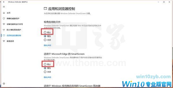 小结:首先,请略微降低UAC的警报等级和减少Windows Defender的提示并提高Edge的防护;降低UAC请自行设定,这个用过Win7的应该也就知道了,就不提了;减少Windows Defender提示,请创意者用户前往开始菜单下的Windows Defender安全中心,然后左下角设置关掉提示;提高Edge防护,请前往Windows Defender安全中心并进入“应用和浏览器控制”——前两个直接选择阻止。