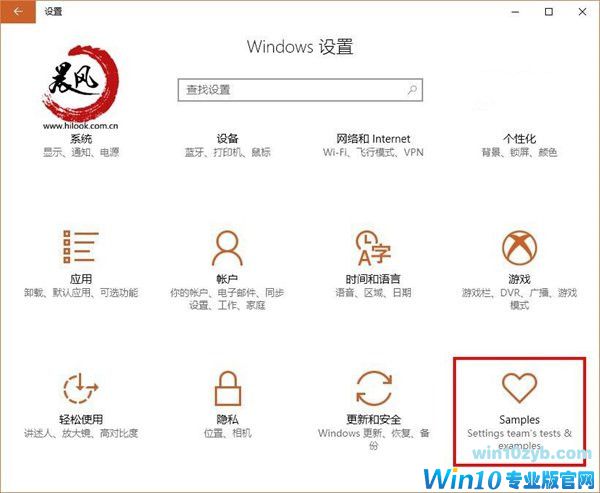 5、打开或重启设置应用,在应用首页最后应该能够看到“Samples”出现