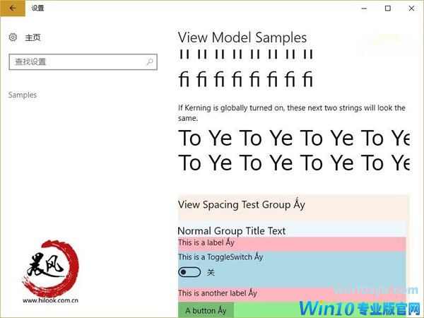 需要说明的是,Samples顾名思义,只是Win10设置项UI的样板,尽管里面各种设置控件几乎都已经出现,就算你在里面调节的面目全非,也丝毫不会影响当前系统设置,而且你会感觉里面的调节项目有些莫名其妙,所以这个设置项应该是给相关开发人员作参考的。