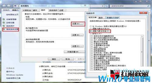 性能优化:右键点击我的电脑-属性-高级系统设置-高级-性能设置-视觉效果里选择调整为最佳性能。
