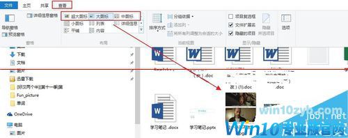 4、关键还在“查看”选项,只有选择“超大图标”,“大图标”,“中图标”(三个中的任意一个)才能显示出缩略图,如下图。