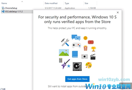 那么可能你会问,当尝试安装Windows Store商店之外的应用时会如何,目前早期的体验表明,Windows 10 S系统会弹出提示框“在Windows 10 S上使用的应用必须来自Windows应用商店”,再一次告诉用户只能使用Windows商店的应用。在某些情况下,系统还会自动跳转显示关于已在Windows应用商店中提供的某类相似应用,或者某种特定应用的建议。