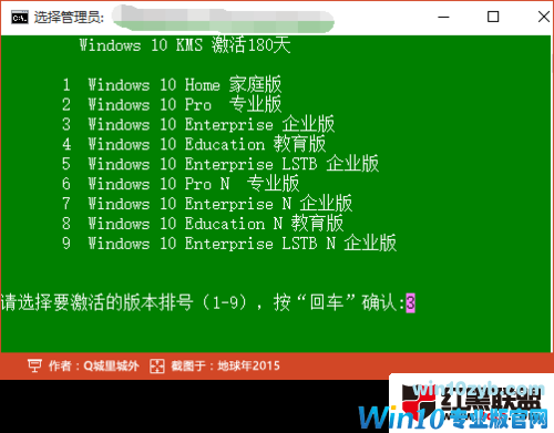 利用试用版激活注册码注册,启动“KMS激活工具-手动选择”,选择当前win10的版本,我这里安装的企业版,所以启动工具后,直接按键盘数字3,并按回车。