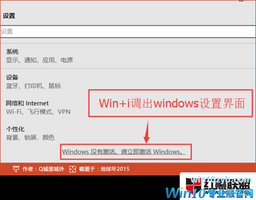 我们按快捷键“Win+I”启动windows设置,在此时界面已经和日常有所区别了。在设置界面底部,可以看到“Windows没有激活,请立即激活Windows。”,将鼠标移动到此文字上,并点击鼠标左键。