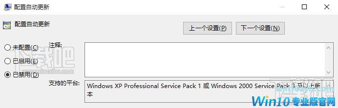 3.将Windows Update的启动类型修改为【禁用】,按【确定】保存设置就可以禁用自动更新服务了。