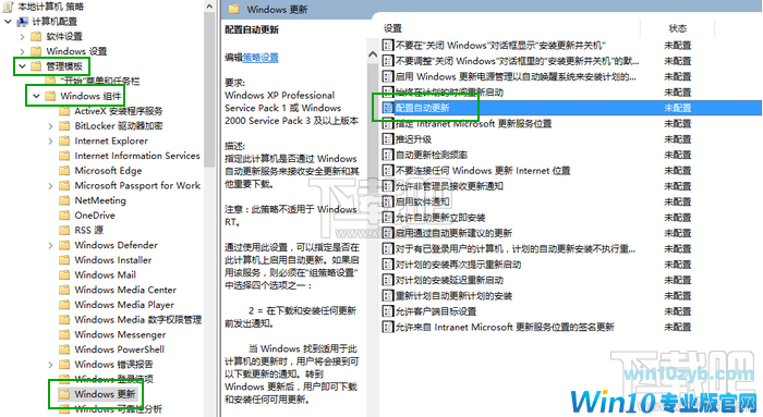 2.依次展开【计算机配置】>【管理模板】> 【Windows组件】> 【Windows更新】,右键点击【配置自动更新】,选择【编辑】。
