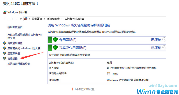 关闭445端口方法三:通过开启Windows系统防火墙来阻挡攻击