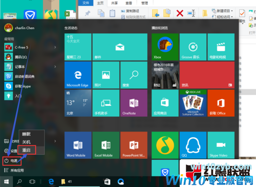 如果电脑能正常开机,那么在开机后,单击开始菜单,按下键盘上的Shift键,同时点系统重启,如图。如果电脑不能正常开机,在按下电源键,出现windows的logo后,狂按F8。进入win8/10的“选项”界面