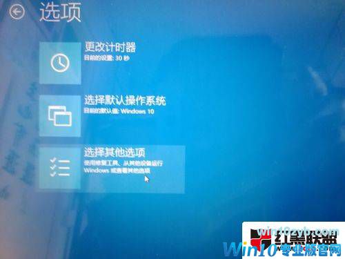 另外,如果你的计算机是双系统的,在进入“高级选项”时,在系统选择界面点击“更改默认值和其他选项”,然后选择“其他选项”,便可以进入第二步的画面了。