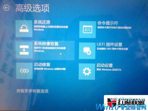 在界面中,依次选择:疑难解答→高级选项→系统映像修复。